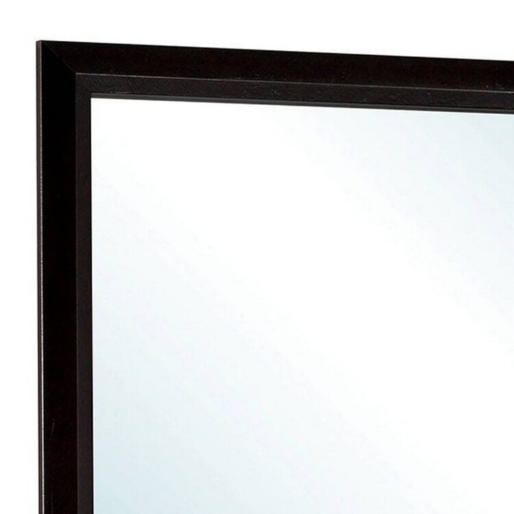 • Benzara Rectangular Wooden Frame Mirror with Mounting Hardware, Espresso Brown image - 1