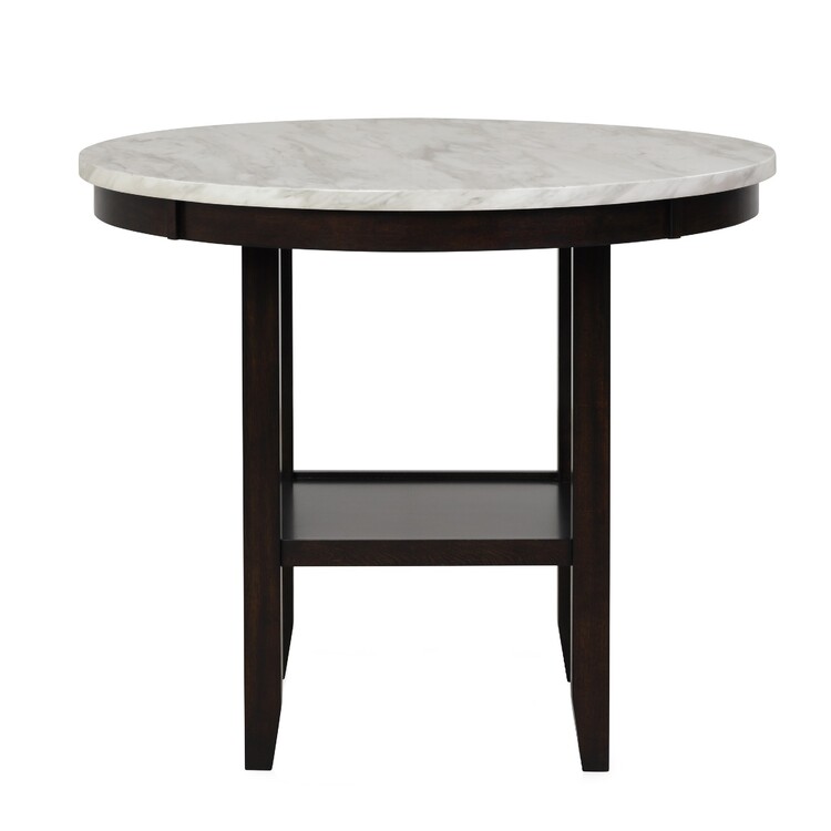 • Benjara Kate 42 Inch Round Counter Table, Faux Marble Top, White, Espresso image - 1