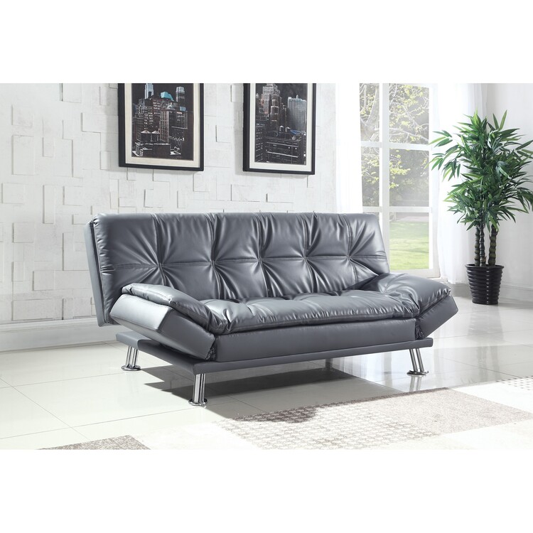 • Benjara Leather, Retro Style adjustable Sofa bed, Gray image - 1