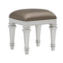 • BenJara Leatherette Padded Vanity Stool with Tapered Legs and Molded Detail, Silver image - 1