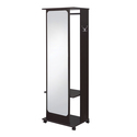 BenJara Mirror and Wood Hall Tree with Hanging Rod and Casters, Brown and Silver