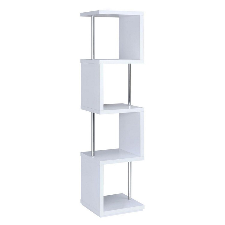 • Benjara Modern Four Tier Wood And Metal Bookcase, White image - 1