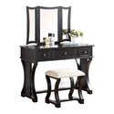 • Brown Wooden Vanity Set with Stool and 3 Drawer Storage - Benzara image - 1