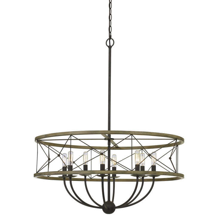 Benjara Round Wooden Frame Pendant Fixture with Metal Lattice Design, Dark Bronze