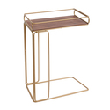 • The Urban Port C Shape Minimalist Wood Side Tray Table with Metal Frame, Brown and Matte Gold image - 1
