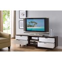 • Benzara Sophisticatedly Designed TV Stand With Four Drawers, Dark Brown and White image - 1