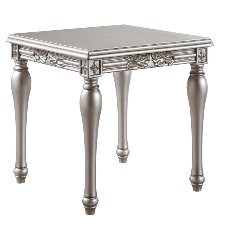 • Benjara Sto 28 Inch Classic End Table, Square, Floral Trim, Wood, Silver image - 1