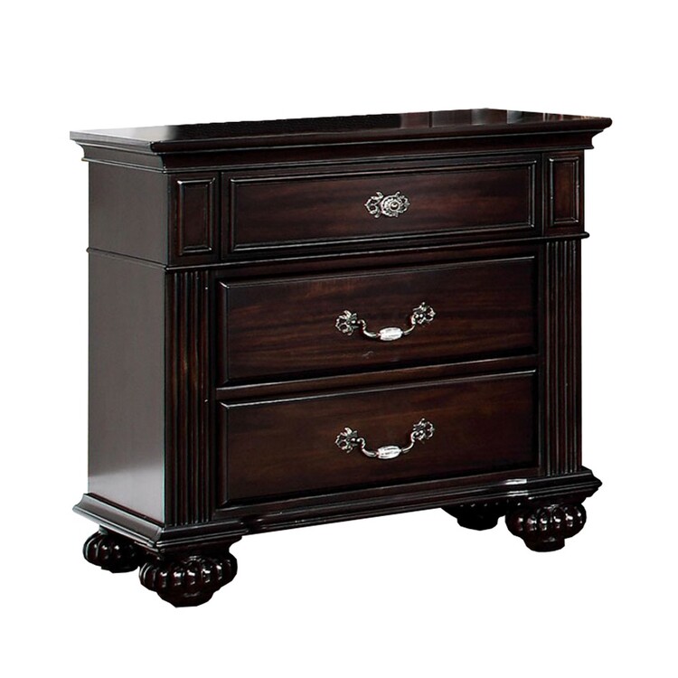 Dark Walnut Traditional Style Nightstand with Ball Bearing Glides - Benzara