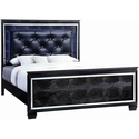 • Benjara Textured Eastern King Size Bed with Silver Trim Accents, Black image - 1