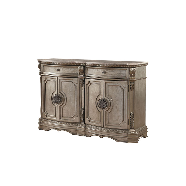 • Benzara Traditional Style Wooden Server with Two Drawers and Marble Top, Champagne Brown image - 1