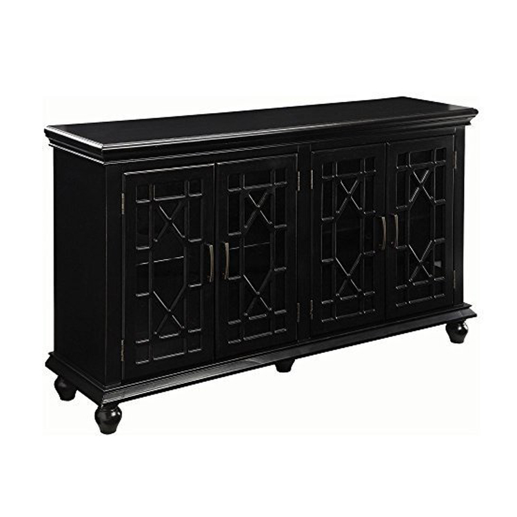 • Traditional Wooden Accent Cabinet with Lattice Doors Black - Benzara image - 1
