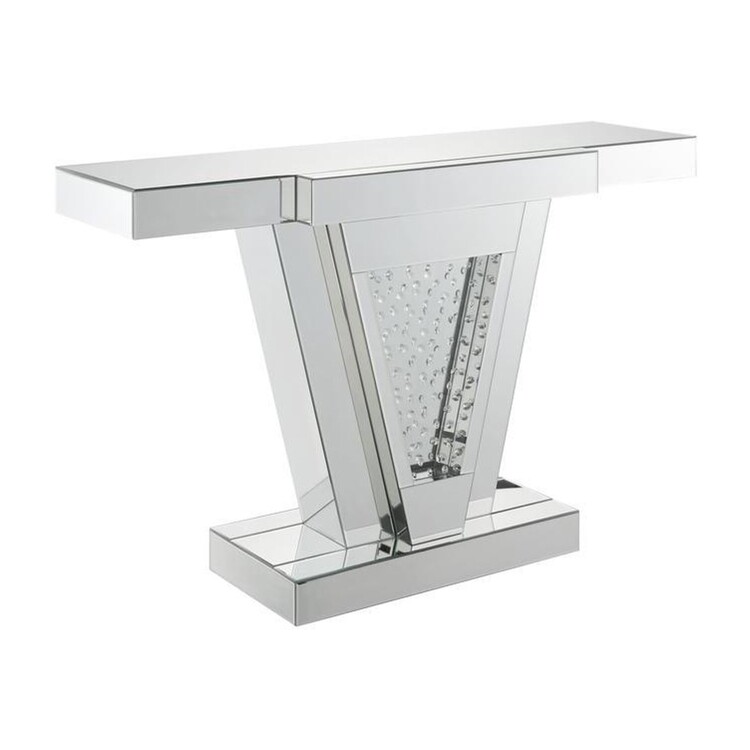 • Benjara Wood and Mirror Console Table with Faux Crystals Inlay, Clear image - 1