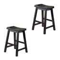 • Benzara Wooden 24" Counter Height Stool with Saddle Seat, Distressed Cherry, Set Of 2 image - 1