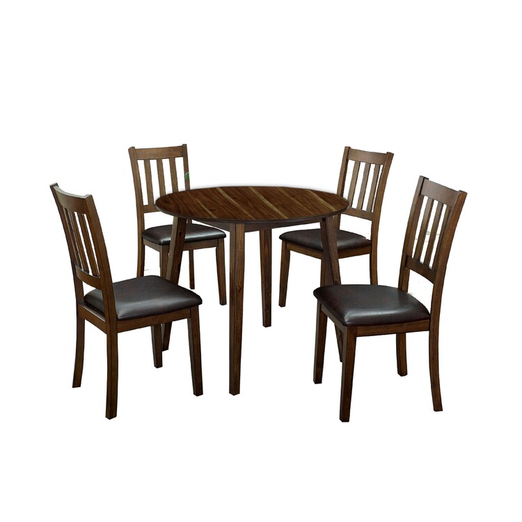 • BenJara Wooden Dining Table with Ladder Back Style Chairs, Set of 5, Brown image - 1