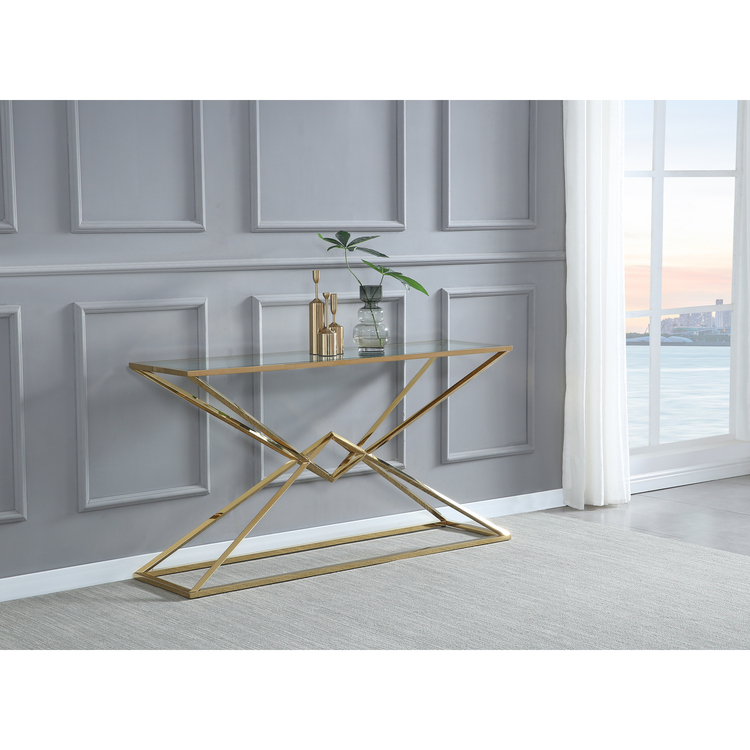• Best Master Furniture Emerson Gold Glass Console Table image - 1