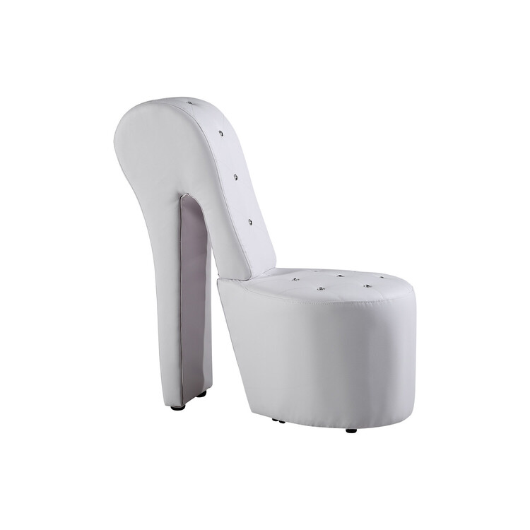 • Best Master Furniture High Heel Faux Leather Crystal Studs Shoe Chair, White image - 1