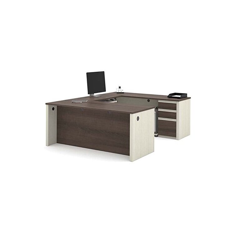 Bestar Prestige U-shaped workstation including one pedestal in White Chocolate & Antigua