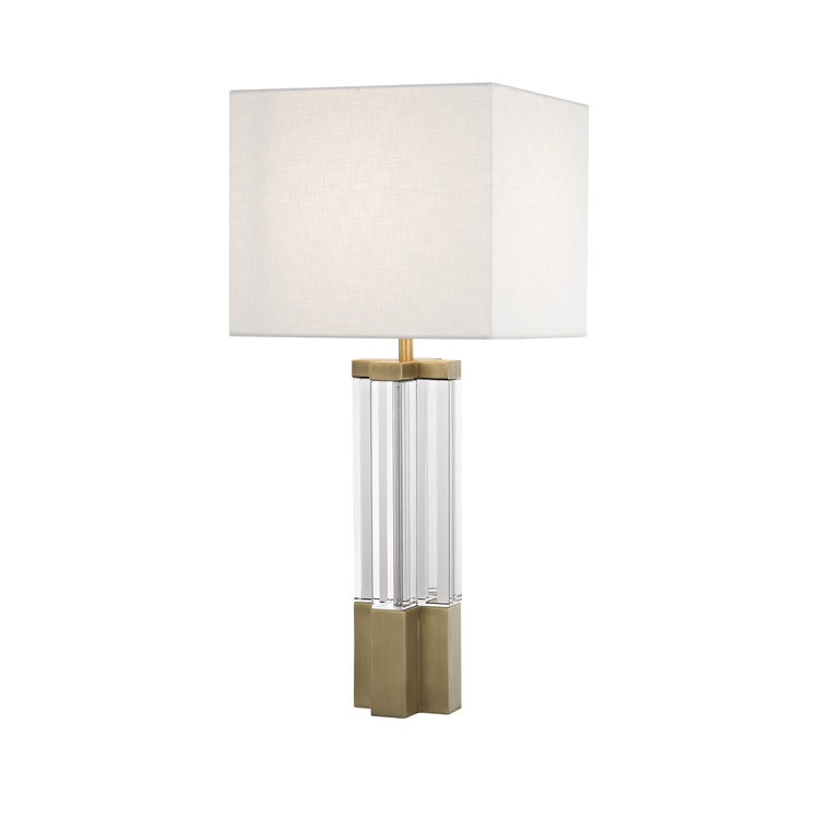 Antique Brass Table Lamp With Clear Crystal And Boxed Shade - Bethel International