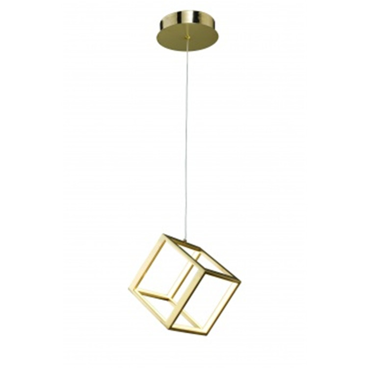 Gold Led Cube Single Pendant Light White Acrylic Diffusers - Bethel International
