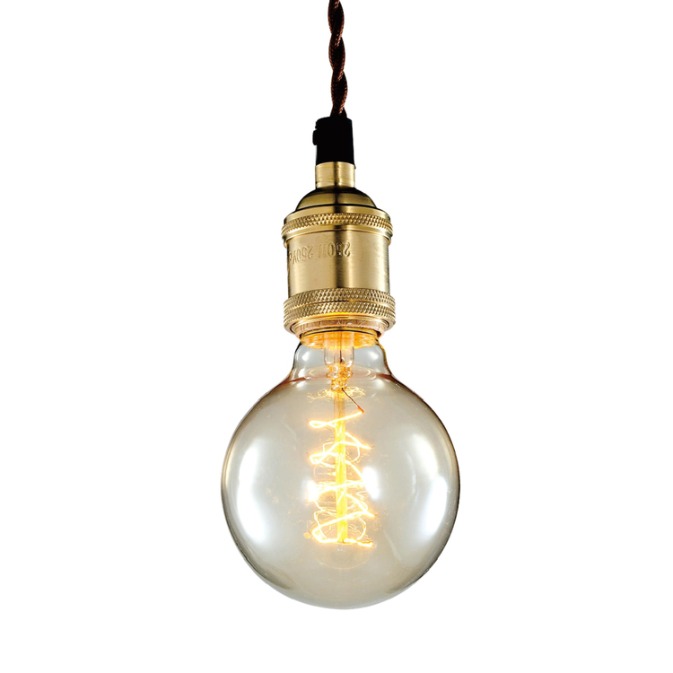 • Bethel Twisted Fabric Pendant Light - Brass Hardware - Brown image - 1