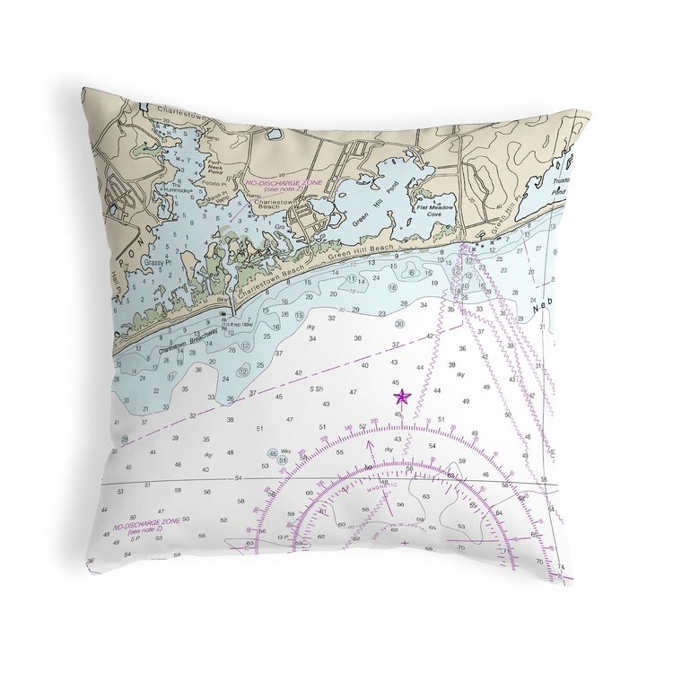 • Betsy Drake Interiors Block Island Sound - Charleston, RI Nautical Map Noncorded Indoor/Outdoor Pillow 12x12 image - 1