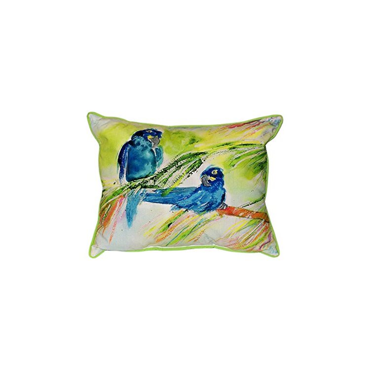 Extra Large Zippered Pillow 20x24 inches Blue Parrots Design - Betsy Drake Interiors