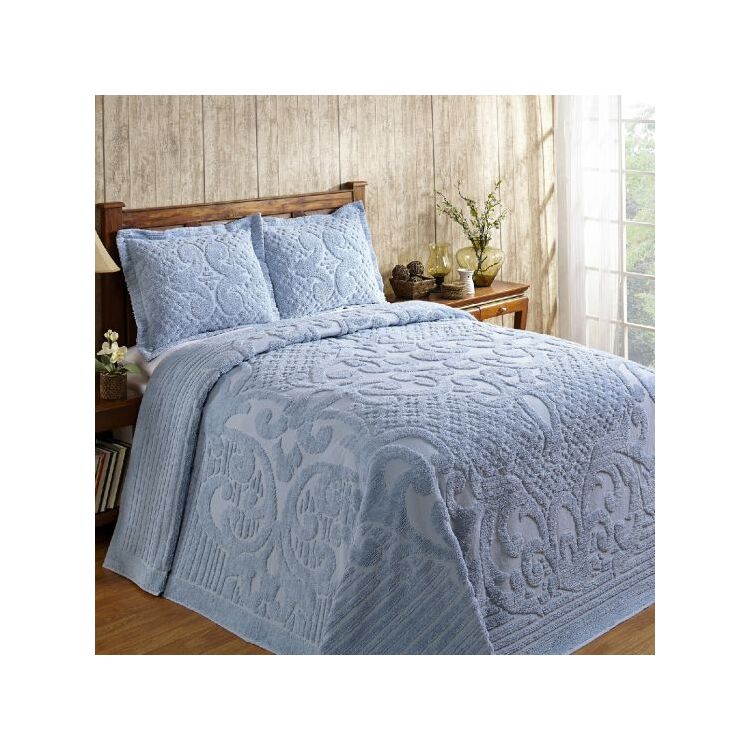 • Blue Tufted Cotton Chenille Bedspread King Size - Better Trends image - 1