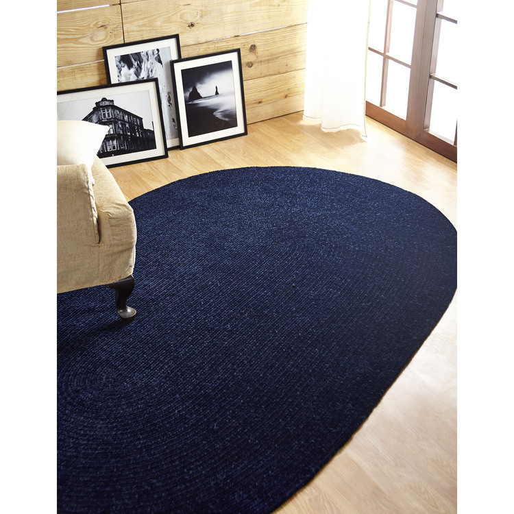 • Chenille Solid Collection 30" x 50" Oval in Navy image - 1