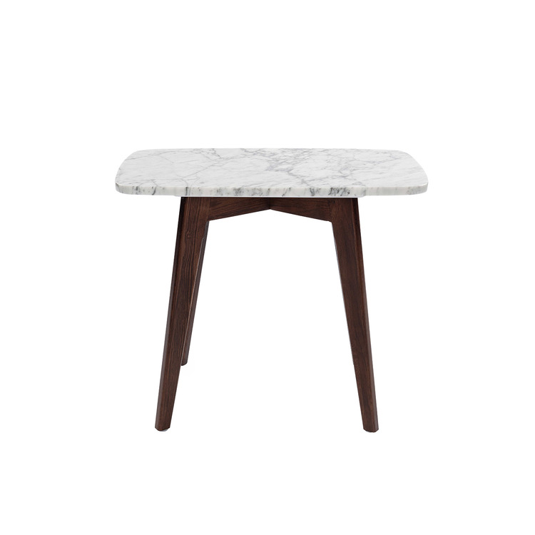 • Bianco White Marble Table with Walnut Legs - Italian Carrara Design image - 1