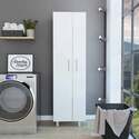 • Modern White Storage Pantry Unit with Five Shelves and Broom Hanger 72 Tall - Boahaus image - 1