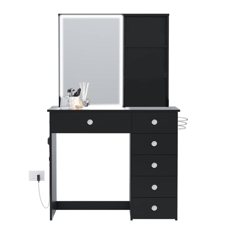 • Black Modern Makeup Vanity Desk with LED Lights and Mirror image - 1