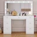 • Boahaus Freya Large Makeup Vanity Desk with Hollywood Lights, 7 Drawers image - 1