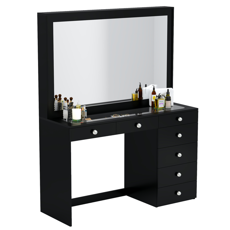 • Modern Makeup Vanity with Glam Glass Top and 7 Drawers image - 1