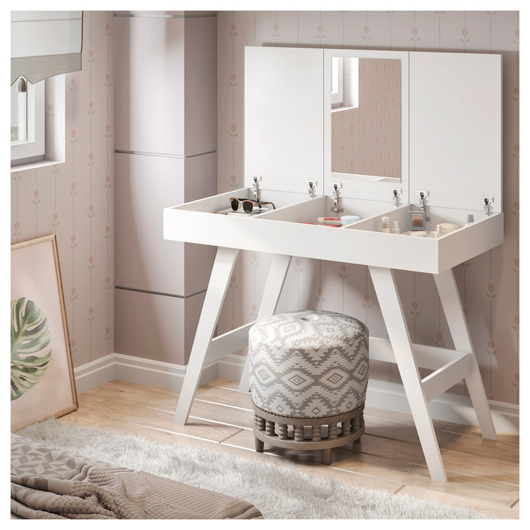 • Boahaus Phillippa White Finish Makeup Vanity Desk, Dressing Table with Mirror image - 1