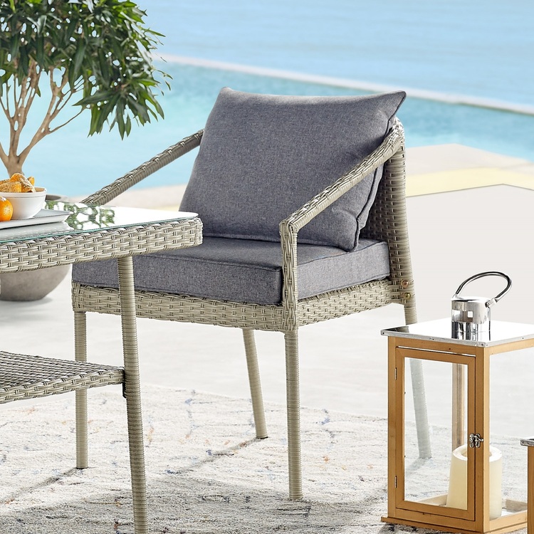• Bolton Furniture Windham All-Weather Wicker Outdoor Light Gray Chairs with Dark Gray Cushions, Set of 2 image - 1