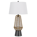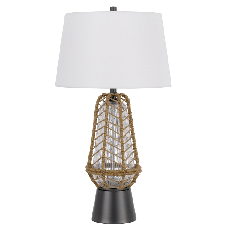 Cal Lighting Hanko 100W 3 way table lamp with 2W LED night light with burlap wrapped glass and metal base