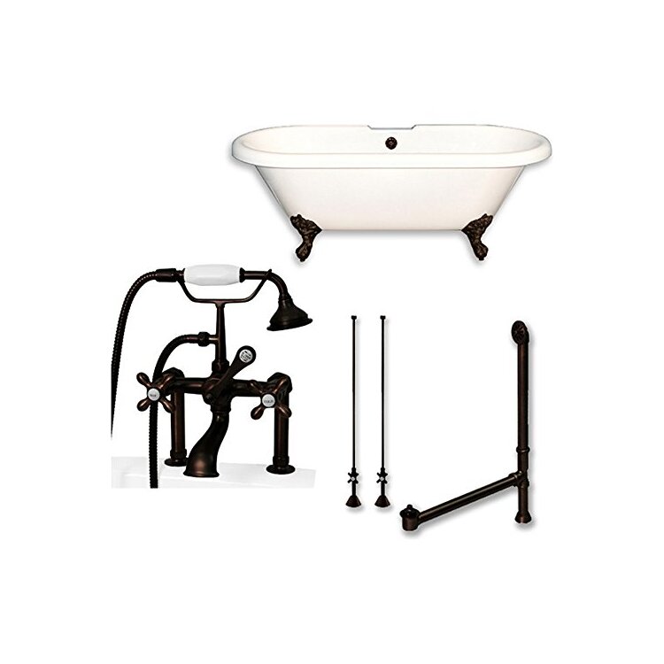• Acrylic Double Ended Clawfoot Bathtub 60" X 30" with 7" Deck Mount Faucet Drillings and complete Oil Rubbed Bronze Plumbing Package image - 1
