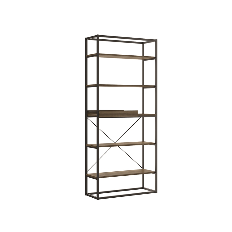 • Casabianca Furniture Noa Bookcase In Dark Brown Oak Melamine With Black Painted Metal Frame And Removable Tray.. image - 1
