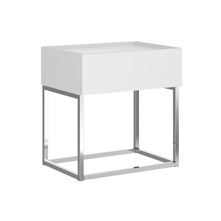 • Casabianca Furniture Noa Nightstand In Matte White With Chromed Metal Frame. image - 1