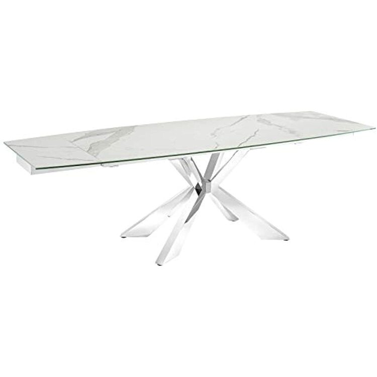 • Talenti Casa ICON motorized dining table in white marbled porcelain top on glass with polished stainless steel base. image - 1