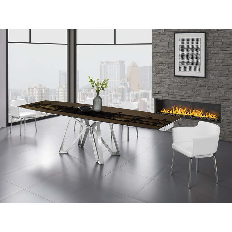 • Casabianca Home Dcota manual dining table with brushed stainless steel base and smoked top. image - 1