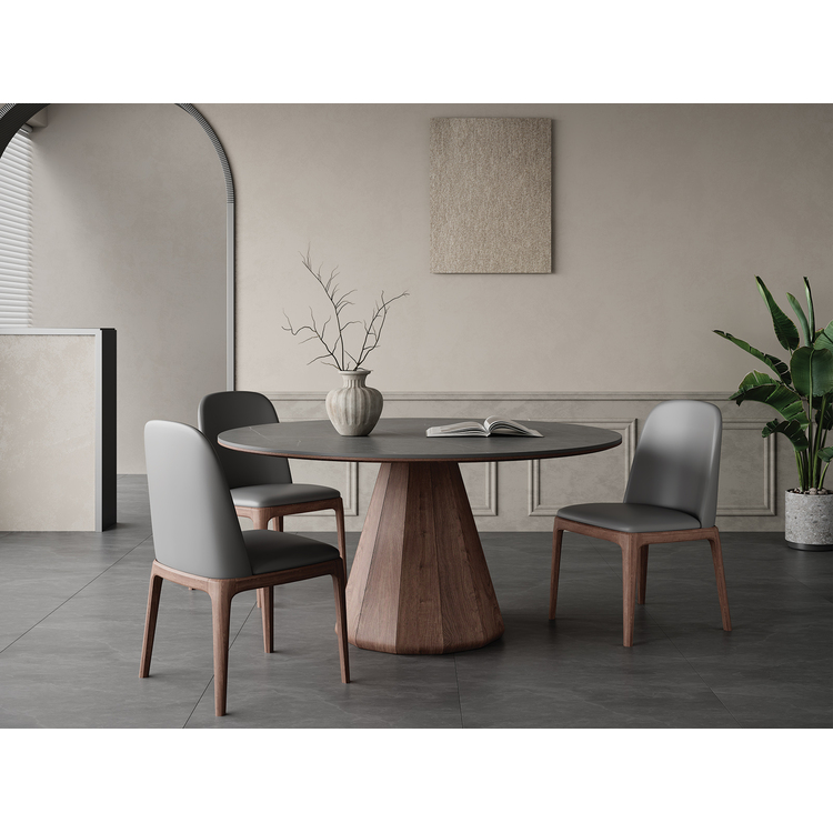 • Casabianca Home Eric 47 in round dining table with walnut base and gray marbled ceramic top. image - 1