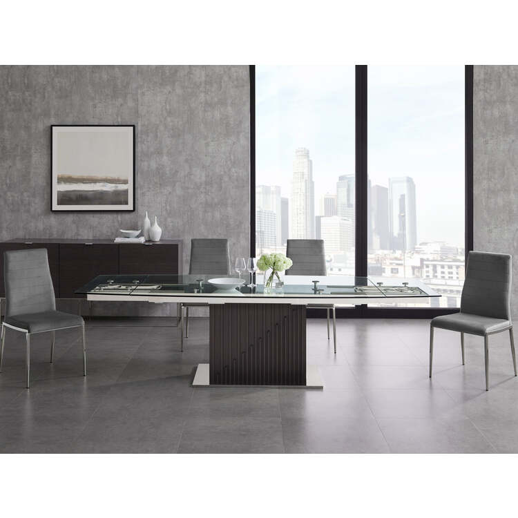 • Casabianca Home Moon Dining Table - Extendable Gray Oak & Clear Top image - 1