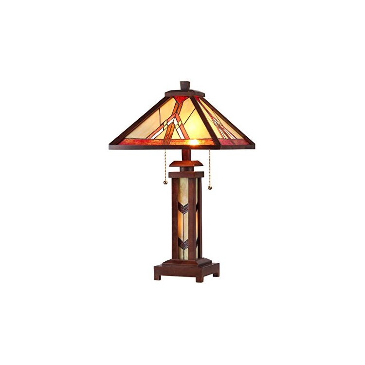 • Anton Tiffany-Style 3 Light Mission Double Lit Wooden Table Lamp 15" Shade image - 1