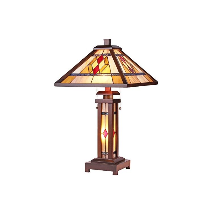 • Gareth Tiffany-Style Mission 3 Light Double Lit Wooden Table Lamp 15" Shade image - 1