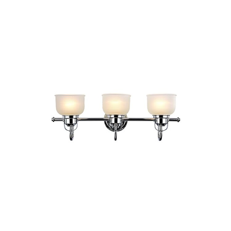 • Chloe Lighting Chloe Lighting Lucie Industrial-Style 3 Light Chrome Finish Bath Vanity Wall Fixture White Frosted Prismatic Glass 25" Wide image - 1