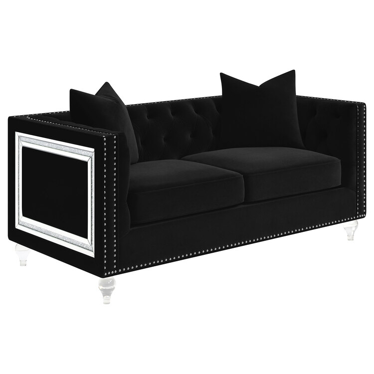 • Coaster Delilah Upholstered Tufted Tuxedo Arm Loveseat Black image - 1