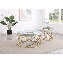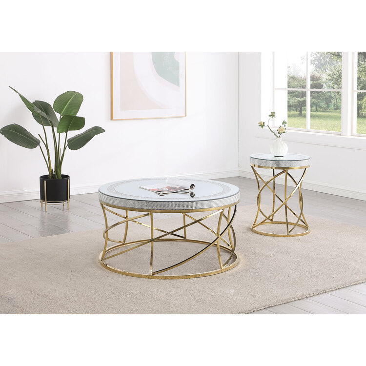 • Coaster Elise 2-piece Round Mirror Top Coffee and End Table Set Gold image - 1