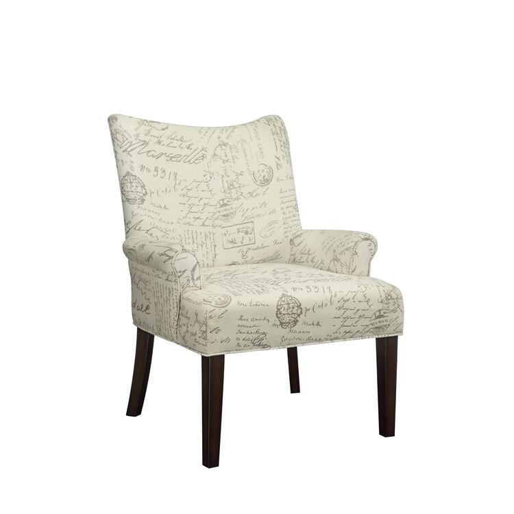 • Coaster French Script Pattern Accent Chair Off White and Cappuccino image - 1