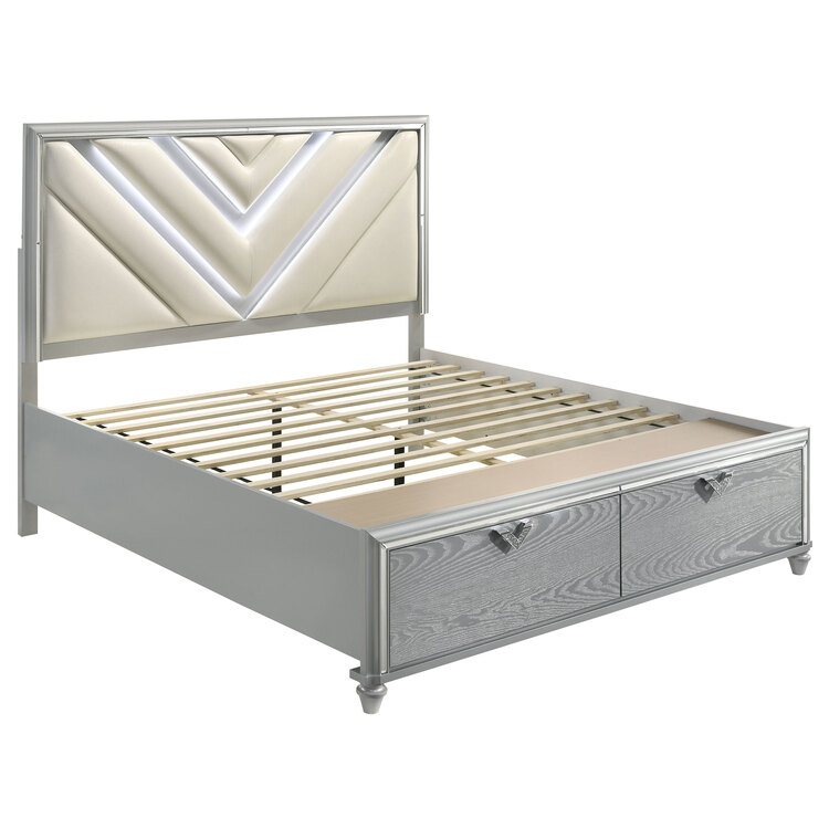 • Coaster Veronica Wood Queen LED Storage Panel Bed Light Silver image - 1